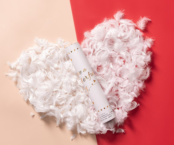 Пневмохлопушка, Конфетти перья, Белый, 28 см, 1 шт.