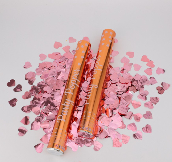 Пневмохлопушка, Розовое золото, Конфетти сердца, 30 см, 1 шт.